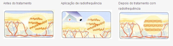 Mecanismo de ação: A radiofrequência age por conversão, ou seja, converte uma energia eletromagnética de elevada frequência em efeito térmico, promovendo assim um aquecimento tissular e ativação do sistema circulatório. Além disso, estimula mudanças na conformação do colágeno e induz a neocolagênese através da geração de energia térmica, de forma controlada, em camadas profundas do tecido cutâneo e subcutâneo.